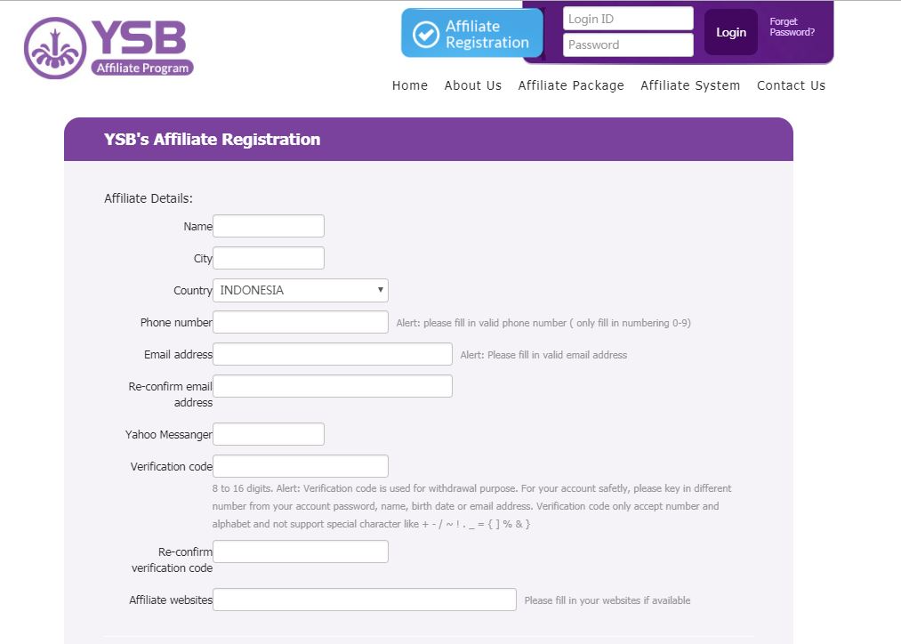 Upon sucessfully registerred as YSB affiliate, you could login to our affiliate system via the login ID.